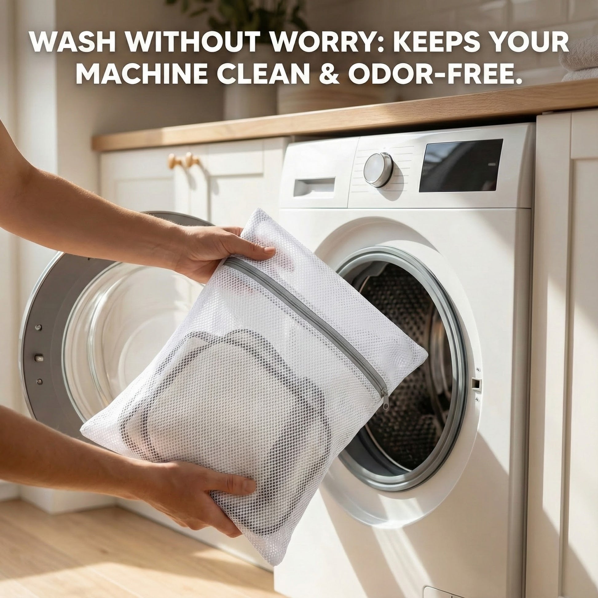 OdorLock™ keeps your washing machine completely clean and protected by trapping odor, hair, and residue inside the bag before your InstinctMat enters the cycle. It eliminates the #1 fear of washable pads contamination and lingering smell while creating a hygienic, mess-free wash routine you can trust. Perfect for pet parents who want total peace of mind and a fresh, odor-free laundry room.